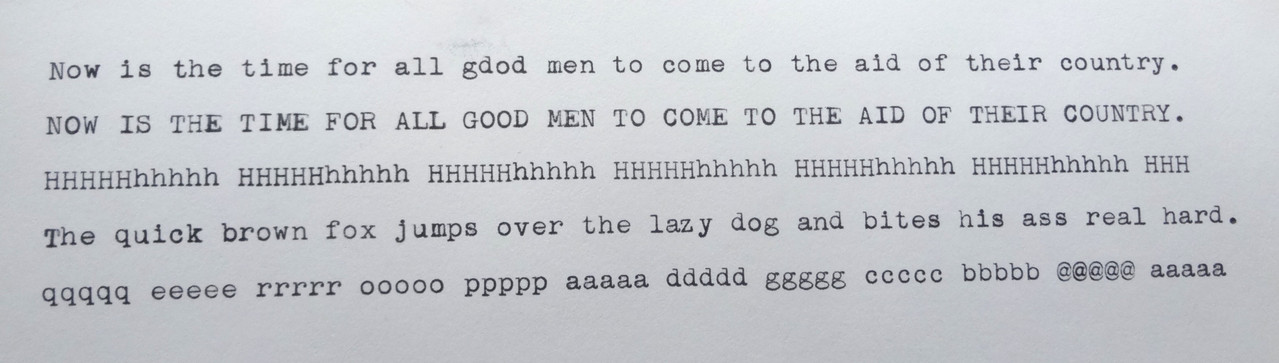The lower case typeslubs were so filled with ribbon gunk, the small-circles making up some of the lower case letters were just a dark-black smudge on paper.