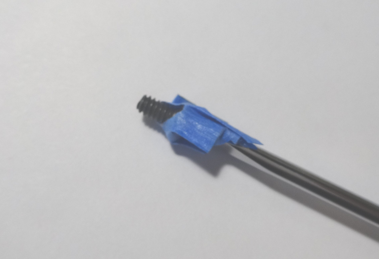 2. Push the screw-threads through the masking tape from the "sticky" side of the tape.