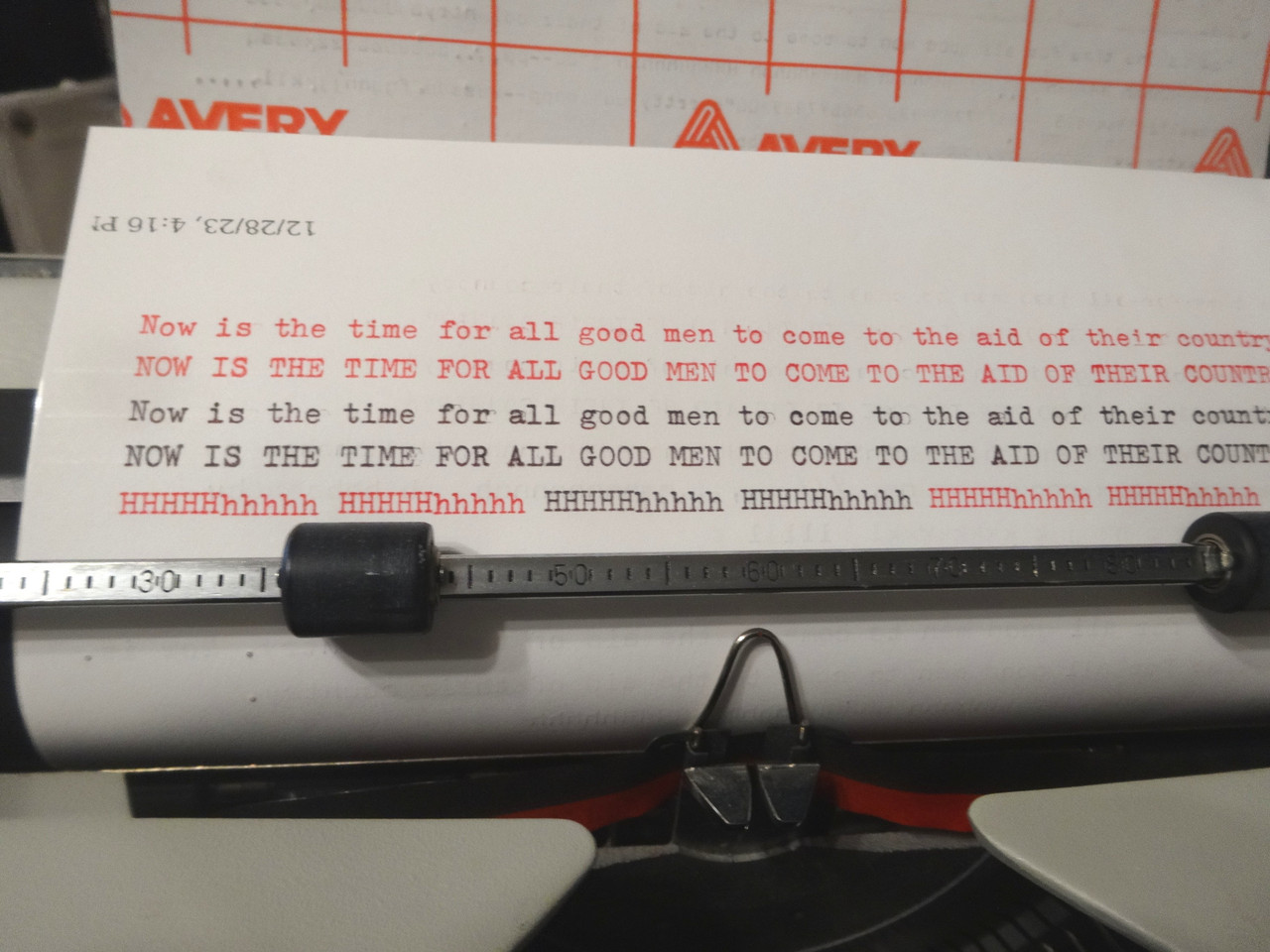 The SG3 is very, very good, but can't quite keep up with me. Specifically: the first character after a space lands a little early, thus has a bunch of extra space between it and the rest of the word. It's interesting that the SG3 performs less well than the SG1 because they're almost identical under the hood - I even swapped parts between them while I was working on them to diagnose issues. My only guess is that this particular machine may have been well used, or the SG3, being at the end of the era of solid all-metal machines, may have been manufactured to slightly looser tolerances. It does feel looser and more clanky than the SG1.